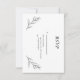 Hier ist eine einfache RSVP-Karte. Auf der Rückseite habe ich einen Ort geschaffen, um eine Einladungsnummer zu schreiben. Ich habe eine Tabelle für meine Hochzeit erstellt, die eine Einladungsnummer angibt und dann diese Nummer auf der Rückseite der RSVP-Karte geschrieben hat, sodass, wenn die Karte ohne einen Namen darauf zurückkommt, Sie wissen, an wen diese Einladung geschickt wurde.