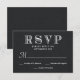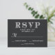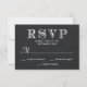 Einfache, aber elegante Wedding UAWG Response Karten. Vintager schwarzer, gefärbter Sacktuchhintergrund mit weißem Retro-Holzschnitt. Ideal für moderne rustikale Hochzeiten mit einer raffinierten Touch von Klasse. Hinweis: Dies ist eine Papierkarte mit einem PRINTIERTEN Bild eines texturierten Leinwand-Einbruchs für dekorative Wirkung. Es gibt keine echten oder erhöhten Texturen.