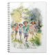 2023 Geduld walten lassen! Notebook für Ihre Kinder. Eine glückliche Gruppe von Kindern, die mit einem Aquarell-Stil laufen.