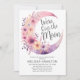 Individuell gestaltete Babydusche mit Blumenmoon und Aquarellmond und Blumendekoration auf weißem Hintergrund.