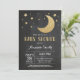Über dem Mond Babydusche Einladung. Gold Glitzer und Chalkboard Hintergrund. Für weitere Anpassungen klicken Sie bitte auf die Schaltfläche "Anpassen" und verwenden Sie unser Designwerkzeug, um diese Vorlage zu ändern.