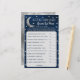 Dieses Spiel "over the moon" ist perfekt für alle, die dieses Jahr eine Babydusche haben. Das Design zeichnet sich durch einen silbernen Mond mit Sternen auf einem marineblau Aquarell-Hintergrund aus und ist leicht zu personalisieren Template-Formulierung. Geben Sie einfach Ihre Spielkarten an Ihre Gäste, um an der Dusche zu spielen. Wer am nächsten ist, gewinnt ohne zu übergehen, einen Preis Ihrer Wahl!