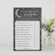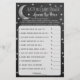 Dieses Spiel "over the moon" ist perfekt für alle, die dieses Jahr eine Babydusche haben. Das Design zeichnet sich durch einen silbernen Mond mit Sternen auf einem Chalkboard-Effekt-Hintergrund und einfach zu personalisieren Template-Formulierung. Geben Sie einfach Ihre Spielkarten an Ihre Gäste, um an der Dusche zu spielen. Wer am nächsten ist, gewinnt ohne zu übergehen, einen Preis Ihrer Wahl!