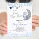 Über dem Mond Baby Dusche Einladung für Junge mit einem Mond, Sternen und schönen Imitaten Gold Glitzer.