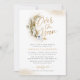 Diese herrliche Einladung enthält Goldtext, einen boho blühenden Mond, Goldstaub und rosa Wolkenakzente.