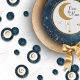 Feiern Sie mit diesem atemberaubenden Baby Duschkonfetti im kosmischen Stil! 🌙 mit dunkelblauem Hintergrund, zarten goldenen und weißen Sternen, einem glänzenden Goldmond und einer winzigen 🚀, Set es den perfekten Ton für Ihre Veranstaltung "Houston, We are Over the Moon, We Have a Boy!".
