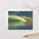 Über dem Regenbogen - schöner Regenbogen gegen einen blauen Himmel, der im Wasser landet, mit dem Wort "irgendwo" darunter. Inspiration, motivierend, aber dennoch provokant - ideal für jede Gelegenheit oder Beziehung.