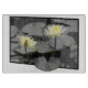 Dieses Bild zeigt zwei zarte Wasserlilien in sanften, blassgelben Farbtönen, die vor einem Hintergrund von gedämpften, graustufigen Lilienpolstern und Wasser lebhaft stehend werden. Die Blume reichen über den schwarzen Rahmen hinaus und erzeugen einen dynamischen, fast dreidimensionalen Effekt. Der Kontrast zwischen den pulsierenden Blüten und der gedämpften Umgebung unterstreicht die sanfte Schönheit und Ruhe der Szene, die ein Gefühl der Ruhe und Eleganz hervorruft.
