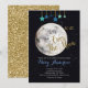 Über die Mond Baby Dusche Einladung für ein Mädchen oder ein Junge mit einem Mond, Sternen und schönen Imitaten Gold Glitzer.