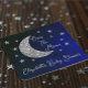 Über dem Mond Babydusche mit Silbermond und Sternen vor einem schwarz-blauen Nachthimmel