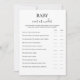 Diese schicke Typografie Over oder Under Baby Shower Game Card ist ideal für eine moderne Babydusche. Das einfache Design zeichnet sich durch klassisch minimalistische schwarz-weiße Typografie mit einem rustikalen Bohustempfinden aus. Für eine erweiterte Anpassung dieses Designs, wählen Sie einfach die Schaltfläche "Anpassen" oben!