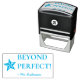 Dieses motivierende Gummi Briefmarke Design beinhaltet die positive Botschaft "BEYOND PERFECT!" und den Namen eines Lehrers oder Lehrers. Es hat auch eine dekorative Sternform. Es könnte von einem Lehrer oder Erzieher verwendet werden, wenn er Aufgaben markiert, um anzuerkennen, dass ein Schüler gut abgeschnitten hat.