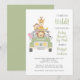 Niedliche Babydusche mit E-Mail-Einladung, in der die Tiere des Kinderzoos (Löwe, Elefant, Zebra, Affe und Giraffe) in ein Safari-Fahrzeug gepackt werden, "It's About to Get Wild" in lustiger Typografie und "Baby Shower" und der Name der Mutter in einer Dschungelgrün-Schrift. Personalisieren Sie die Dusche einfach per E-Mail, ändern Sie den Text "It's a Boy!" auf dem Fahrzeug und fügen Sie das Fälligkeitsdatum auf dem Nummernschild hinzu, oder verließ Sie leer.