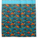 Ein farbenfroher orangefarbener und grüner Duschvorhang für das Badezimmer