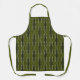 Silberribbons und schwarze Bänder hüllen sich durch Paneele aus Oliven-, Army- und Erbsengrün. Dieses computergenerierte Design ist ein kleiner Jugendstil und ein wenig moderner Mitte des Jahrhunderts. Es ist eine visuell auffällige Art, gelbe Grüntöne in diese wunderbare Schürze zu bringen.