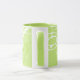 Eine stylische, scharf-grüne Tasse-of-coffee mit eigenem Namen und Initialen, mit Monogramm in elegantem Script-Schriftart-Stil... eine einzigartige Personalisierung... scharfes Grün ist eine trendige, angenehme Farbe, eine mittelhelle Farbtöne von gelb-grün.
