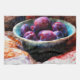 Was konnte, erfüllend als eine handgemachte Tonwarenschüssel sein, voll angefüllt mit den saftigen Pflaumen und auf einer selbst gemachten Patchworksteppdecke stillstehen? Braune, amethyst und aquamarine Farben der Aufmachung, diese Vision des inländischen Bliss stellt zufrieden.