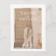 Moderne Hochzeitseinladung mit weißem Pinselrahmen und traditionell eleganter Typografie im Foto.