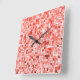 Überlappen von Mini-Quadraten, Rot- oder Korallent Quadratische Wanduhr