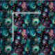 Die dominierenden Farbtöne sind Blues, Purpur und Teppiche, die eine luxuriöse und mystische Atmosphäre schaffen. Die Akzente aus Gold, Bernstein und Kupfer fügen Wärme und Kontrast hinzu und erhöhen so die Tiefe des Designs. Das Zusammenspiel von dunklen und hellen Tönen verleiht ihm eine leuchtende, beinahe irisierende Qualität - die daran erinnert, wie echte Pfauenfedern das Licht erwischen. Die wirbelnden, überlappenden federähnlichen Formen erzeugen eine flüssige, Bio Bewegung. Jede Feder weist eine delikate Linienarbeit auf, die den natürlichen Kurven der Pfauenschwaden folgt. Die Augenmuster in den Federn werden sorgfältig platziert, nachahmen die "Augen" in echten Pfauenfedern, stilisiert aber mit leuchtenden Lichtern und einer surrealen Tiefe