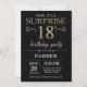 Überraschen Sie 18. Geburtstags-Einladung mit Schwarzem und GoldGlitzer-Hintergrund. Tafel. Erwachsener Geburtstag. Männer oder Frauen Bday laden ein. Irgendein Alter. Für weitere Kundenbezogenheit klicken Sie bitte "besonders anfertigen es" Knopf und benutzen unser Entwurfswerkzeug, um diese Schablone zu ändern.