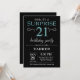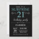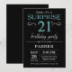 Überraschen Sie 21. Geburtstags-Einladung mit schwarzem und aquamarinem Glitzer-Hintergrund. Tafel. Erwachsener Geburtstag. Männer oder Frauen Bday laden ein. Irgendein Alter. Für weitere Kundenbezogenheit klicken Sie bitte "besonders anfertigen es" Knopf und benutzen unser Entwurfswerkzeug, um diese Schablone zu ändern.