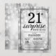 Überraschen Sie 21. Geburtstags-Einladung mit silbernen Schnur-Lichtern mit silbernem Glitzer-Hintergrund. Versilbern Sie Geburtstag. Erwachsener Geburtstag. Männer oder Frauen Bday laden ein. 13. 15. 16. 18. 20. 21. 30. 40. 50. 60. 70. 80. 90. 100., irgendein Alter. Für weitere Kundenbezogenheit klicken Sie bitte "besonders anfertigen es" Knopf und benutzen unser Entwurfswerkzeug, um diese Schablone zu ändern.