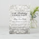 Eleganter 60. Überraschungs-Geburtstags-Party Einladungsentwurf mit silbernem Glitzer beleuchtet Motiv, individueller Name und Datum und zusätzlicher Text.