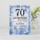 Überraschen Sie 70. Geburtstags-Einladung mit blauen Schnur-Lichtern mit blauem Glitzer-Hintergrund. Blauer Geburtstag. Erwachsener Geburtstag. Männer oder Frauen Bday laden ein. 13. 15. 16. 18. 20. 21. 30. 40. 50. 60. 70. 80. 90. 100., irgendein Alter. Für weitere Kundenbezogenheit klicken Sie bitte "besonders anfertigen es" Knopf und benutzen unser Entwurfswerkzeug, um diese Schablone zu ändern.