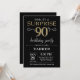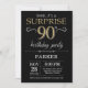 Überraschen Sie 90. Geburtstags-Einladung mit Schwarzem und GoldGlitzer-Hintergrund. Tafel. Erwachsener Geburtstag. Männer oder Frauen Bday laden ein. Irgendein Alter. Für weitere Kundenbezogenheit klicken Sie bitte "besonders anfertigen es" Knopf und benutzen unser Entwurfswerkzeug, um diese Schablone zu ändern.