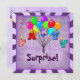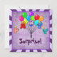 Bouquet aus Ballons mit Party Kerzen und Konfetti auf lila Textur.