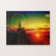 Kirchen in einer überraschenden Sonnenuntergangsszene, die sich durch ungewöhnliche Farben auszeichnet.