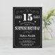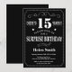 Überraschung 15. Geburtstag Einladung Chalkboard. Schwarz-Weiß-Hintergrund Erwachsener Geburtstag. Männer oder Frauen zum Geburtstag. Kinder Junge oder Mädchen Lady Teenage Teenage Bday Einladen. 13. 15. 16. 18. 20. 21. 30. 40. 50. 60. 70. 80. 90. 100. Jedes Alter.
