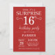 Überraschung 16. Geburtstag Einladung mit rotem Hintergrund.Kindergeburtstag. Junge oder Girl Bday Invite. 13. 15. 16. 18. 20. 21. 30. 40. 50. 60. 70. 80. 90. 100. Jegliches Alter.