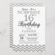 Überraschung 16. Geburtstag Einladung mit Silver Glitzer Zickzack. Schwarzer und Silberner Glitzer.Kindergeburtstag. Junge oder Girl Bday Invite.