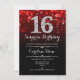 Überraschung 16. Geburtstag Einladung. Elegantes schwarz rotes Design mit Imitaten Glitzer Silber. Erwachsener Geburtstag. Enthält Diamanten, Bokeh-Leuchten und Skript-Schriftart. Männer oder Frauen laden ein. Ideal für eine stilvolle Geburtstagsfeier. Nachricht, wenn Sie weitere Anpassungen benötigen.