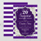 Überraschung 20. Geburtstag Einladung. Weiblich lila, weißes Design mit Imitaten Glitzer Silber. Features Streifen, weiße Rosen, Skript-Schriftart und Konfetti. Ideal für eine elegante Geburtstagsfeier. Kann personalisiert sein, jedes Alter zu zeigen. Nachricht, wenn Sie weitere Anpassungen benötigen.