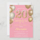Überraschung 20. Geburtstag Rosa und Gold Ballons Einladung