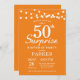 Überraschung 50. Geburtstag Einladung mit String Lights. Orange Hintergrund. Männer oder Frauen zum Geburtstag. 13. 15. 16. 18. 20. 21. 30. 40. 50. 60. 70. 80. 90. 100. Jedes Alter. Für weitere Anpassungen klicken Sie bitte auf die Schaltfläche "Anpassen" und verwenden Sie unser Designwerkzeug, um diese Vorlage zu ändern.