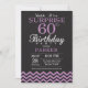 Überraschung 60. Geburtstag Einladung mit Schwarz und Lila Zickzack. Tafel. Erwachsener zum Geburtstag. Mann oder Frau laden ein. Für weitere Anpassungen klicken Sie bitte auf die Schaltfläche "Anpassen" und verwenden Sie unser Designwerkzeug, um diese Vorlage zu ändern.