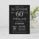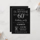 Überraschung 60. Geburtstag Einladung mit Schwarz und Silber Glitzer Hintergrund. Tafel. Erwachsener Geburtstag. Männer oder Frauen laden ein. Jedes Alter.