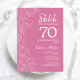 Blumenrosa Überraschung 70. Geburtstag Einladung. Minimalistisches modernes feminines Design mit botanischen Akzenten und Typografie-Script-Schriftart. Einfache florale Einladungskarte perfekt für eine stilvolle weibliche Überraschung am Tag.