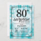 Invitation surprise de 80e anniversaire avec Turquoise lampes à cordes avec Arrière - plan Parties scintillant Turquoise. anniversaire turquoise. Anniversaire adulte. Hommes ou Femmes Anniversaire Invitation. 13ème 15ème 16ème 18ème 20ème 21ème 30ème 40ème 50ème 60ème 70ème 80ème 90ème 100ème, Tout âge. Pour plus de personnalisation, cliquez sur le bouton "Customiser" et utilisez notre outil de conception pour modifier ce modèle.