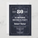 Überraschung 80. Geburtstag Einladung. Elegantes Retro-Design in Marine und Weiß. Features rustikale Holzmuster Muster und Skript-Schriftart. Ideal für Damen- oder Herren-Feiern.