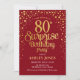 Überraschung 80. Geburtstagsparty - Red & Gold Einladung