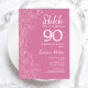 Blumenrosa Überraschung 90. Geburtstag Einladung. Minimalistisches modernes feminines Design mit botanischen Akzenten und Typografie-Script-Schriftart. Einfache florale Einladungskarte perfekt für eine stilvolle weibliche Überraschung am Tag.