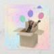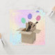 Bengalische Katze in Pappschachtel mit Ballons und Konfetti für Überraschung Geburtstagsparty einladen