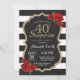 Überraschung Rote Rose 40. Geburtstag Einladung Gold Glitzer. Black and Gold Geburtstagsparty einladen. Gold Glitzer. Schwarze und weiße Streifen. Tafel. Printable Digital. Für weitere Anpassungen klicken Sie bitte auf die Schaltfläche "Anpassen" und verwenden Sie unser Designwerkzeug, um diese Vorlage zu ändern.