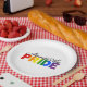 Überwältigend Pride Paper Plate Design in moderner Typografie, die "ABUNDANTLY PRIDE" in einem einfachen, aber sauberen minimalistischen Design liest. Einfaches Design in Pride Regenbogenfarben, das für jeden gut funktioniert.