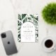 Elegante Einladungen für Hochzeiten, die Ihre Hochzeitsdetails inmitten eines gewölbten goldenen Rahmen mit Eukalyptus, Farne und anderen üppigen Grünpflanzen enthalten. Die botanischen Botanischen Bogen Hochzeitseinladungen kehren zu einem soliden dunkelgrünen Hintergrund zurück. Entworfen, um sich mit unserer Hochzeitskollektion "Abundant Greenery" abzustimmen.